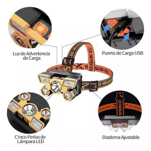 Linterna Minero Vincha 5 Leds Recargable