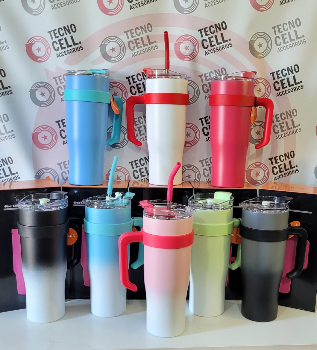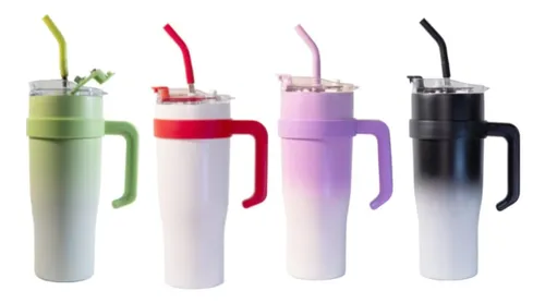 Vaso termico 1200 ml, tapa desmontable, paja y mango, color de gradiente