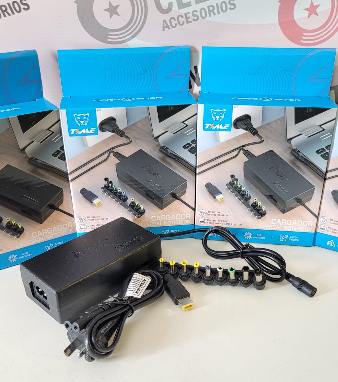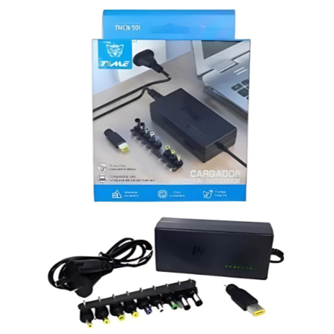 Cargador universal para notebooks de la marca TYME, modelo TMCN-901. Sus características principales son: