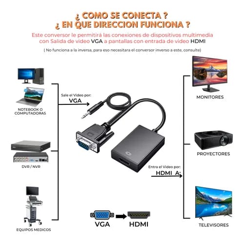 •Convierte señales analógicas VGA a digitales HDMI.