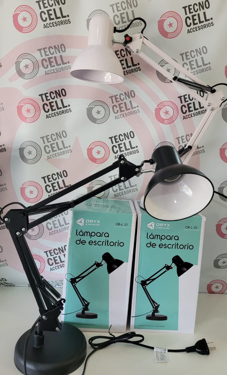 La lámpara de escritorio que se muestra en la imagen es el modelo ORYX OR-L01, disponible en colores blanco y negro. Es una lámpara de diseño metálico y funcional, ideal para escritorios, oficinas y estudios.