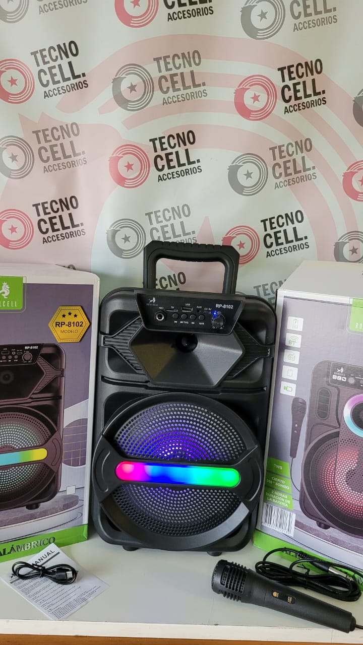- Tipo de producto: Parlante portátil con micrófono y luces LED.