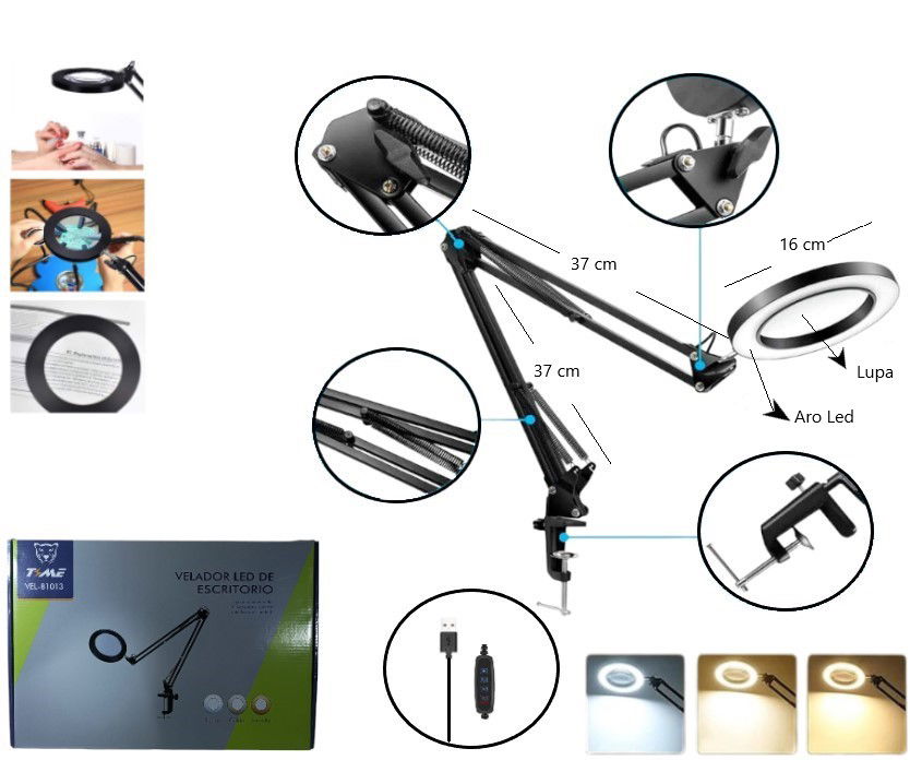 Ideal para trabajos de precisión como manicura, electrónica, lectura, estética y manualidades.
